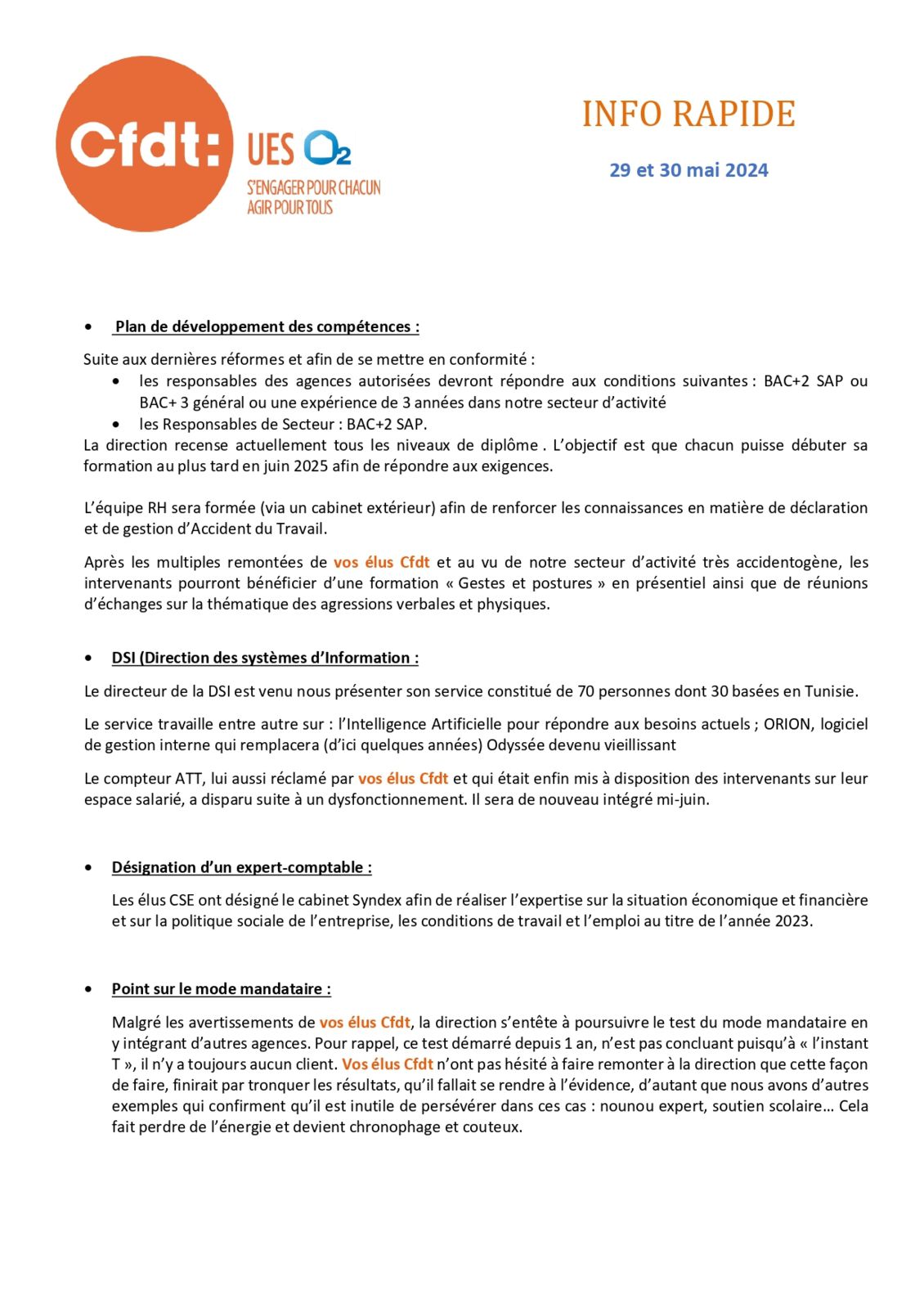 Info rapide du mois de mai 2024