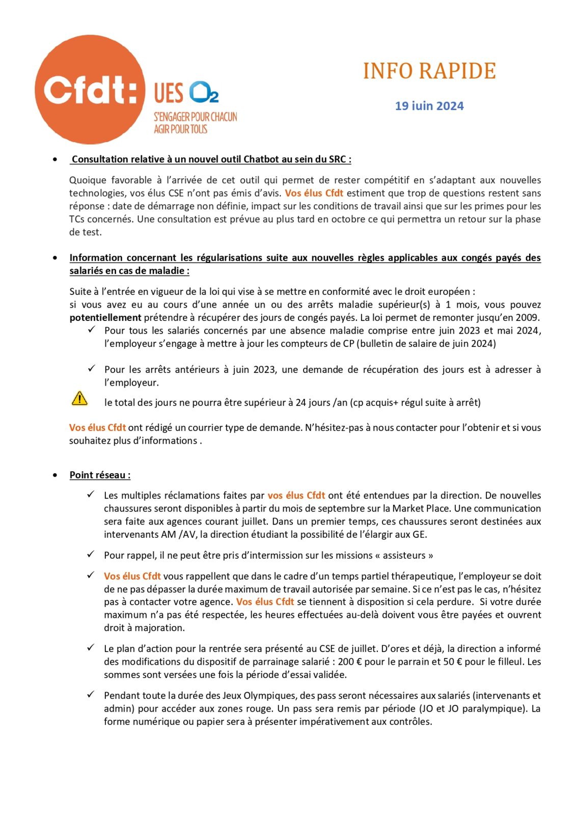 Info rapide du mois de juin 2024