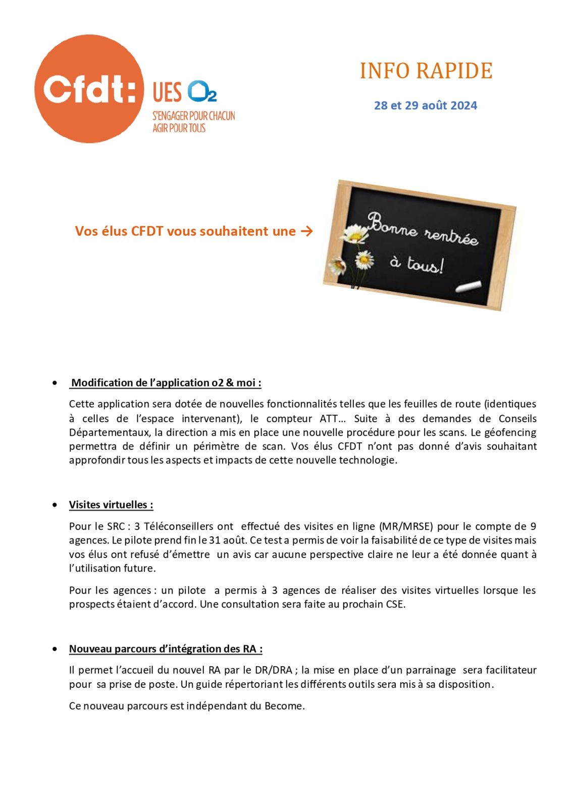 Info rapide du mois de août 2024