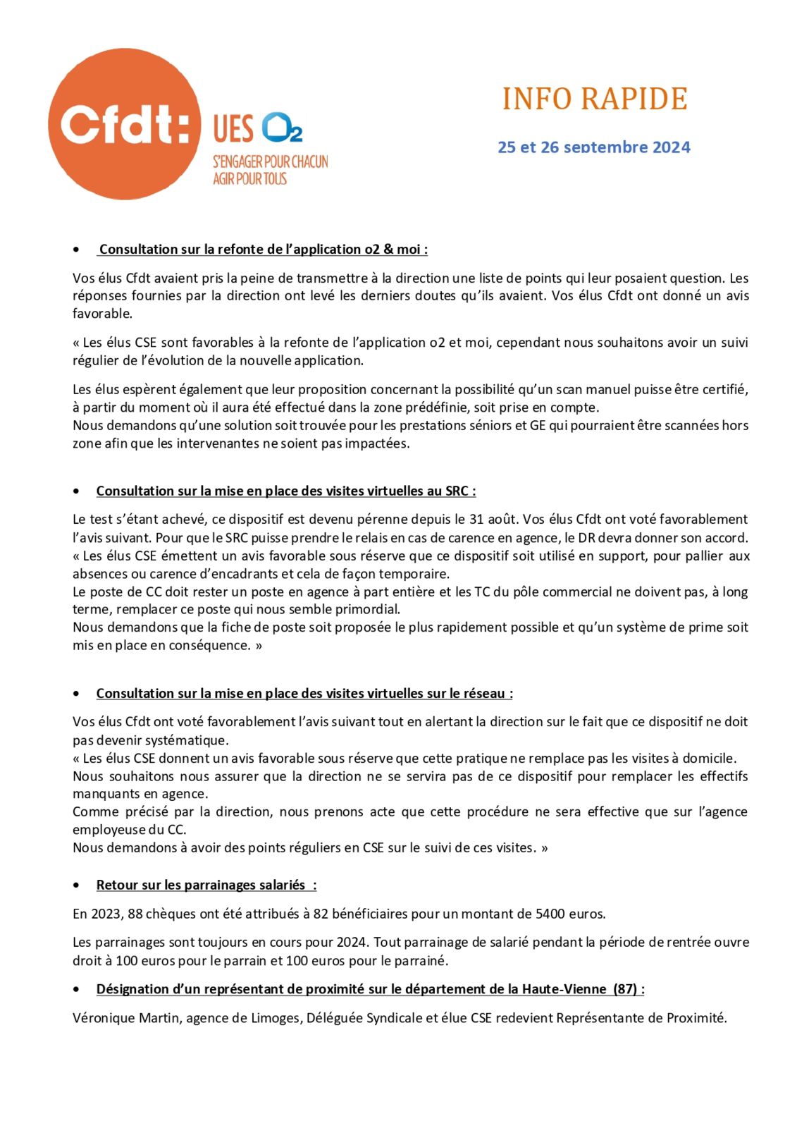 Communication trimestrielle Cfdt 3eme trimestre 2024